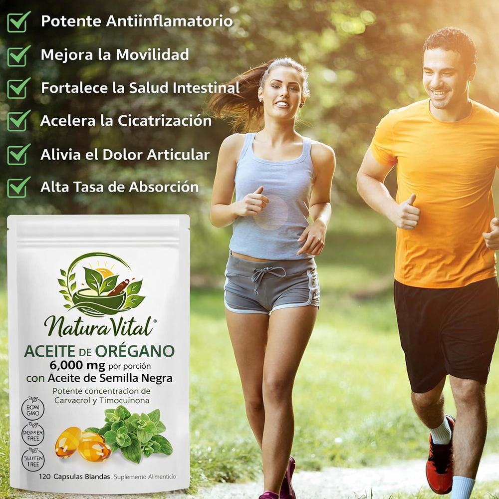 Respuesta 2: Esta sinergia 2 en 1 ofrece un apoyo integral: el orégano aporta 165 mg de Carvacrol para fortalecer el sistema inmune y neutralizar radicales libres, mientras que el aceite de semilla negra protege el revestimiento intestinal y promueve una digestión saludable y una piel radiante.
